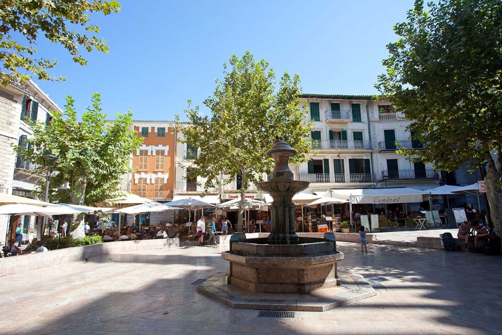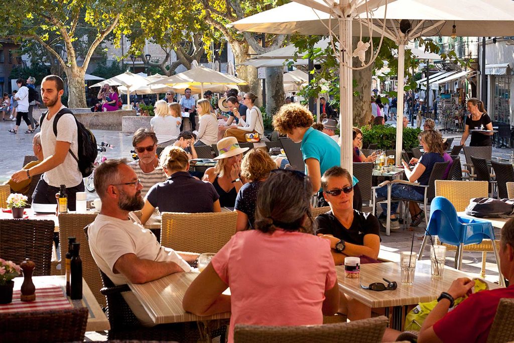 El Circulo Sollerense se sitúa en la plaza principal de Sóller, y ofrece una cómoda terraza exterior además de nuestros salones interiores.